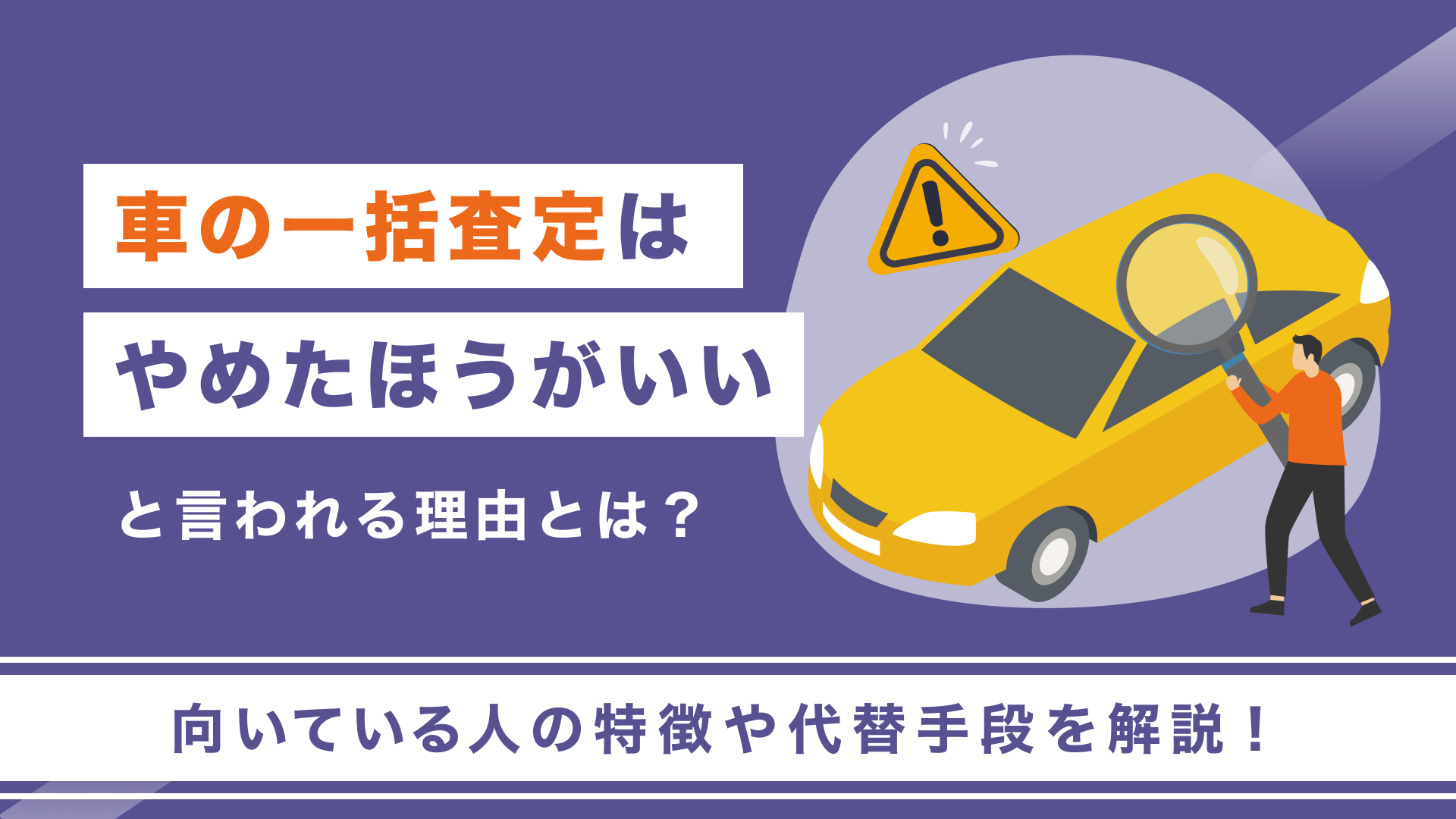 ここまで車一括査定はやめたほうがいいと言われる理由や、車一括査定が向いている人、代替手段について詳しくお伝えしてきました。