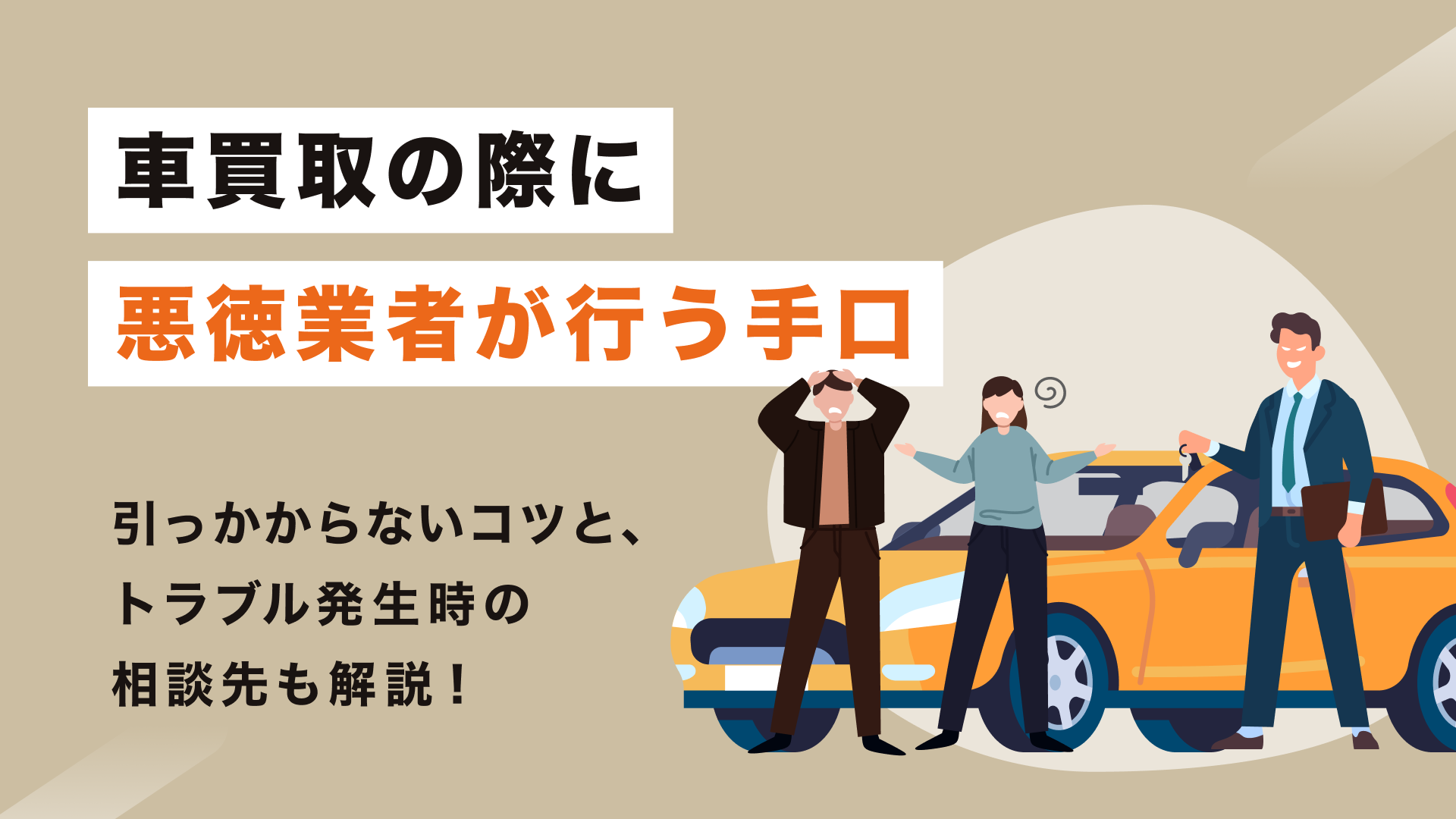 車買取の際に悪徳業者が行う手口と、引っかからないコツは?トラブル発生時の相談先も