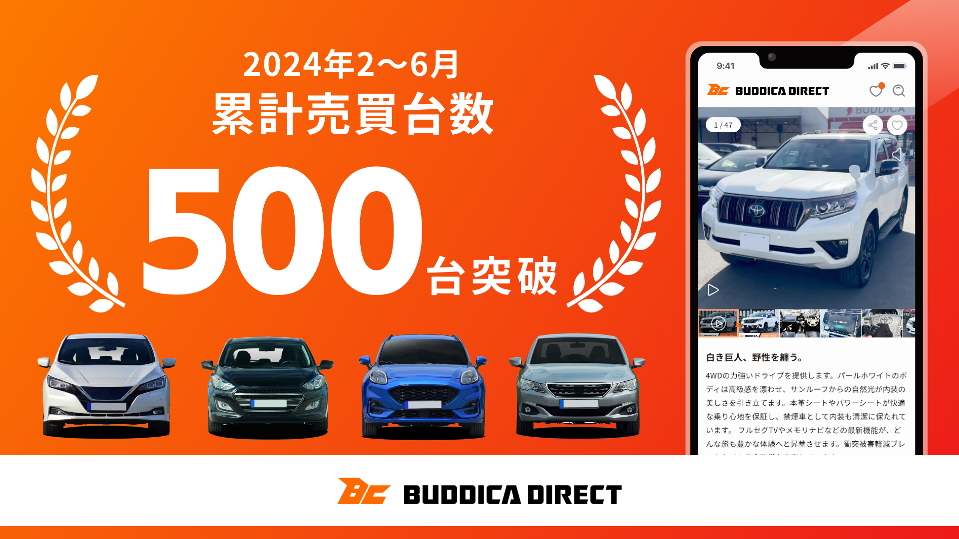 WebやLINEのやり取りだけで中古車販売を全国規模で展開するバディカダイレクト株式会社(URL: https://buddica.direct /本社:東京都渋谷区 / 代表取締役社長:中野 優作)は、1月24日の新会社設立以後わずか5か月で累計売買台数500台を突破しました事をご報告します。